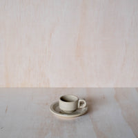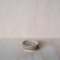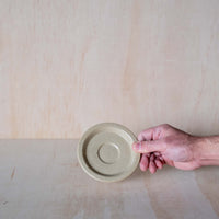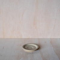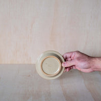 A hand-thrown ceramic saucer, in a sand coloured glaze. Designed to sit beneath a Stacking Espresso Cup. Made from an iron-bearing buff clay body that reveals a light speckle. Crafted by hand in Aotearoa New Zealand.