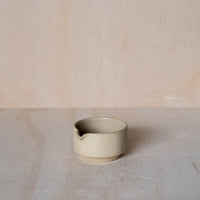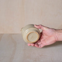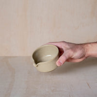 A large hand-thrown ceramic pourer, in a sand coloured glaze. Made from an iron-bearing buff clay body that reveals a light speckle. Crafted by hand in Aotearoa New Zealand.
