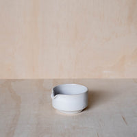 A large hand-thrown ceramic pourer, in a white glaze. Made from an iron-bearing buff clay body that reveals a light speckle. Crafted by hand in Aotearoa New Zealand.