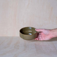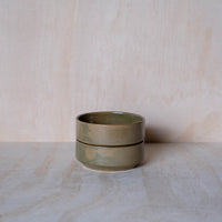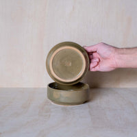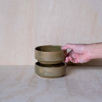 A hand-thrown ceramic stacking bowl, in a green glaze. Ideal for breakfast, soup and serving. Made from an iron-bearing buff clay body that reveals a light speckle. Crafted by hand in Aotearoa New Zealand.