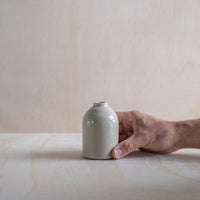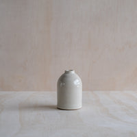 A small hand-thrown bottle shaped vase, in a beige glaze. Ideal a single stem or small posy. Made from an iron-bearing buff clay body that reveals a light speckle. Crafted by hand in Aotearoa New Zealand.